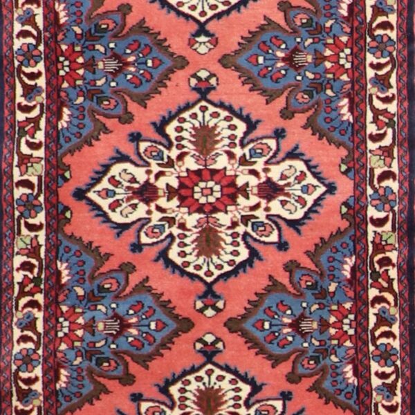 $5,600This beautiful, traditional, Persian runner is made of wool. It is primarily colored red and blue. This rug is 2’5”x16’. Rug #: 004425
