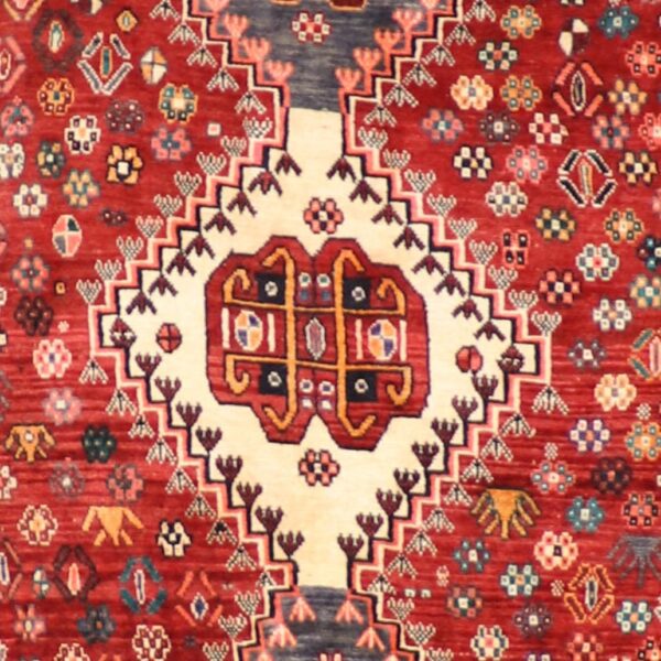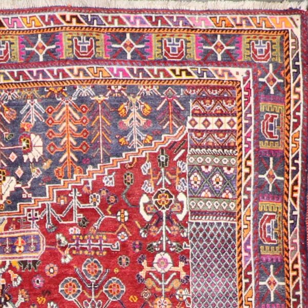 $1,800This beautiful, Persian Shiraz rug is made of wool. It is primarily colored red, ivory, multi-colored. The rug is 6’6”x9’2”. Rug #: 001718
