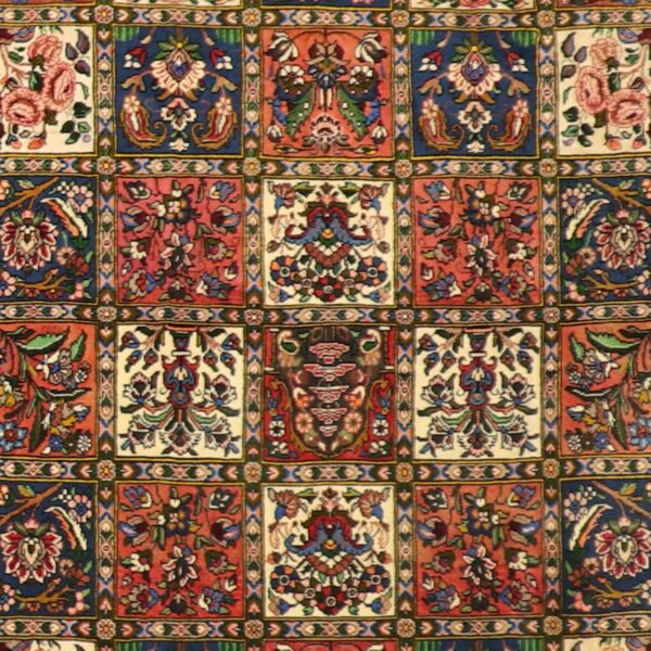 $5,400This beautiful, very high quality multicolored traditional is rug made of wool. It is primarily colored tan, red, blue, brown. The rug is 6’11″x10’1″. Rug#: 014402
