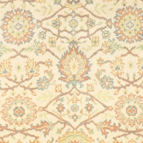 $17,900DETAILS Style: Traditional Size (width): 9’4″ Size (length): 13’1″ Material: Wool Pattern: Antique Primary Color: Ivory Additional Colors: Green and Orange Sku: 001362