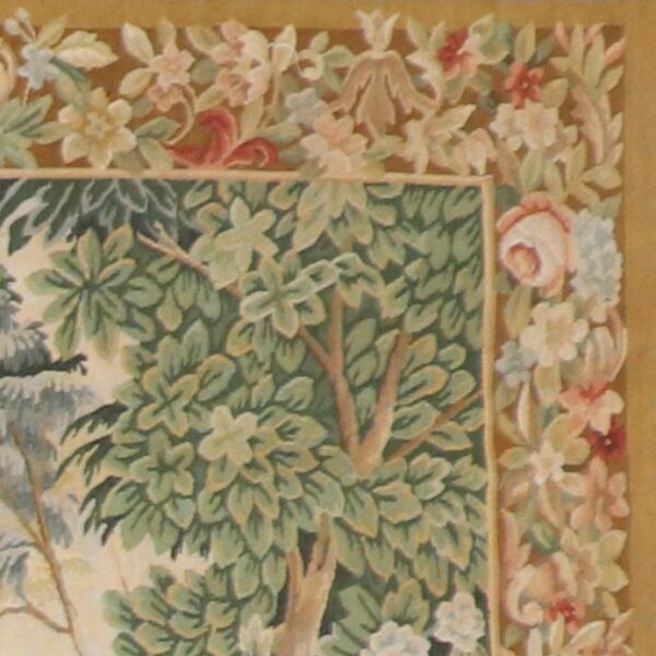 $1,500This beautiful, Aubusson, flatweave rug is made of wool. It is primarily colored tan and pink. This rug is 4’x6’2”. Rug #: 001268