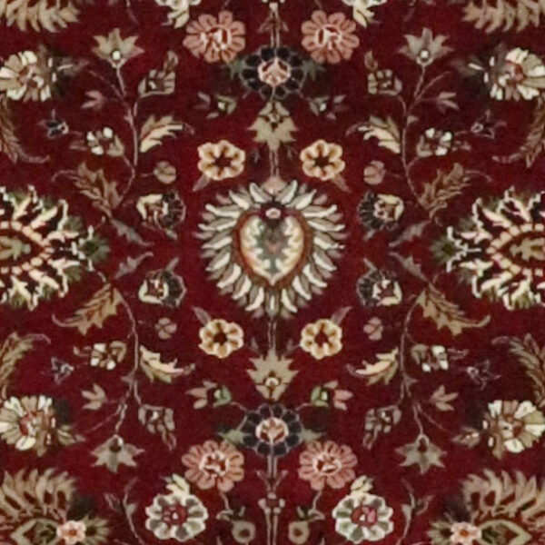 $5,500This beautiful, traditional, tabriz rug is made of wool & silk. It is primarily colored burgundy, ivory, and gold. The rug is 6’x9′. Rug#: 002382