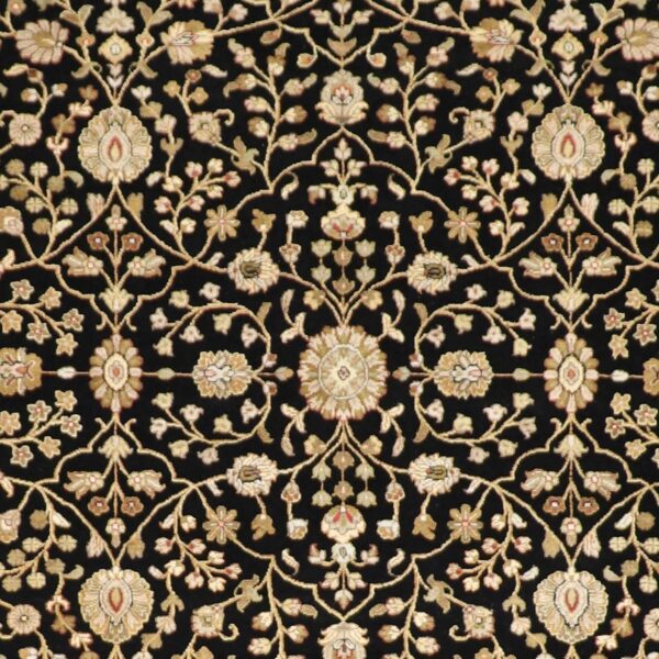 $16,600This beautiful, Traditional, Hand-Knotted rug is made of wool & silk. It is primarily colored black and ivory. This rug is 8’2”x10’3”. Rug #: 013179