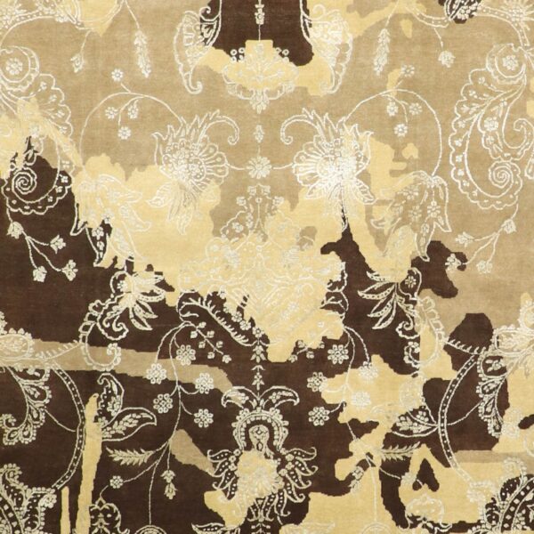 $5,900DETAILS Style: Size (width): 7’10” Size (length): 10’1″ Material: Wool and silk Pattern: Modern Primary Color: Brown Additional Colors: Ivory Sku: 012033