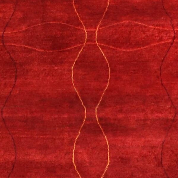 $1,600This beautiful, contemporary rug is made of wool. It took about six months to make this rug. It is primarily colored red. The rug is 4’x6’2”. Rug#: 000793