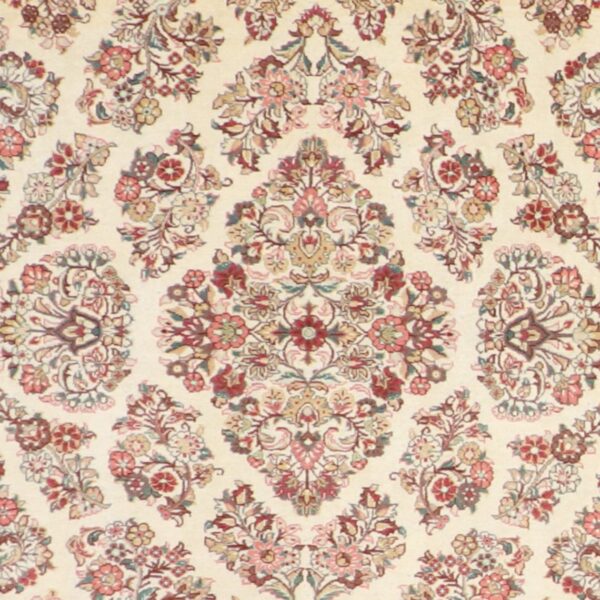 $2,400Original price was: $2,400.$900Current price is: $900.This beautiful rug is made of wool and silk. It is primarily cream and green. The rug is 3’ x 5’. Rug#: 001989