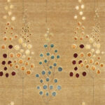 This beautiful, contemporary runner is made of wool & silk. It took six months to make this rug from start to finish. It is primarily colored tan, gold, blue, and red. The rug is 2’6”x12’6”.