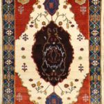 This beautiful, Traditional, Persian, Tribal, Hand-Knotted Rug is made of wool. It is primarily colored ivory and rust. This rug is 3’5”x5’1”.