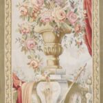 This beautiful, elegant flatweave tapestry is made of wool. It is primarily colored brown and green. This rug is 3’5”x6’7”