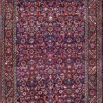 This beautiful, tribal, Persian runner is made of wool. It is primarily colored navy and rust. This rug is 3’7”x13’3”.