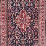This beautiful, Persian Kashan rug is made of wool. It is primarily colored black, red, and red. The rug is 4’10”x10’1”.
