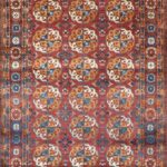 This beautiful, Persian rug is made of wool. It is primarily colored red, blue, and ivory. The rug is 4’2”x6’5”.