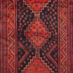 This beautiful, tribal, Persian runner is made of wool. It is primarily colored black and red. This rug is 4’5”x9’.