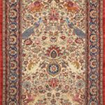 This beautiful, traditional, hand-knotted rug is made of wool. It is primarily colored ivory and red. This rug is 4’7″x6’9″.