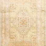 5’10″x8’10” Decorative Ivory Tabriz Wool Hand-Knotted Rug