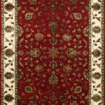 This beautiful, traditional rug is very high quality and it made of wool & silk. It is primarily colored red, ivory, and gold. The rug is 5’11”x9’.