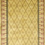 This beautiful, decorative rug is made of wool. It is primarily colored gold, black, and red. It took about 6 months to make this rug. The rug is 5’1”x7’11”.