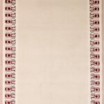 This beautiful, traditional, Aubusson rug is made of wool. It is primarily colored tan, taupe, and burgundy. It took about 6 months to make this rug. The rug is 5’3”x8’.
