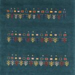 This beautiful, Gabbeh Tribal rug is made of wool. It is primarily colored green, gold, and blue. The rug is 5’4”x6’8”.