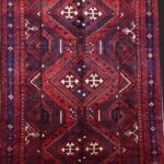 This beautiful, Persian Tribal rug is made of wool. It is primarily colored red, navy, and ivory. The rug is 5’6″x8’1″.