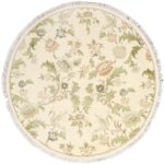 This Contemporary, traditional, Nepal round rug is made of woo and silk l. It is primarily colored ivory and green. The rug is 5’x5’.