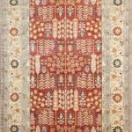 This beautiful, traditional, Herati rug is made of wool. It is primarily colored rust, ivory, blue, and gold. The rug is 6’1″x9’5″.