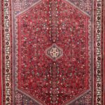 This beautiful, Persian rug is made of wool. It is primarily colored red. The rug is 6’7″x9’9″.