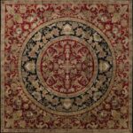 This beautiful, traditional, Kashan rug is made of wool. It is primarily colored black and brown. This rug is 8’8”x8’8”.