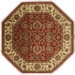 This beautiful, Decorative, Kashan, octagonal, Hand-Knotted rug is made of wool. It is primarily colored red and tan. This rug is 8’x8′.