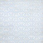 This beautiful, contemporary rug is made of wool and silk. It is primarily colored blue and silver. The rug is 9’1″x11’9″.