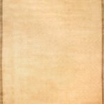 This beautiful, contemporary rug is made of wool. It is primarily colored tan and brown. The rug is 9’x12′.