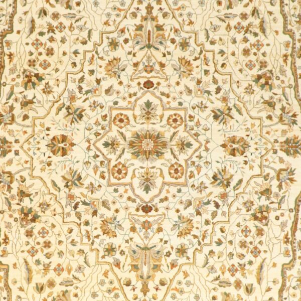 $17,900DETAILS Style: Traditional Size (width): 9’4″ Size (length): 13’1″ Material: Wool Pattern: Antique Primary Color: Ivory Additional Colors: Green and Orange Sku: 001362